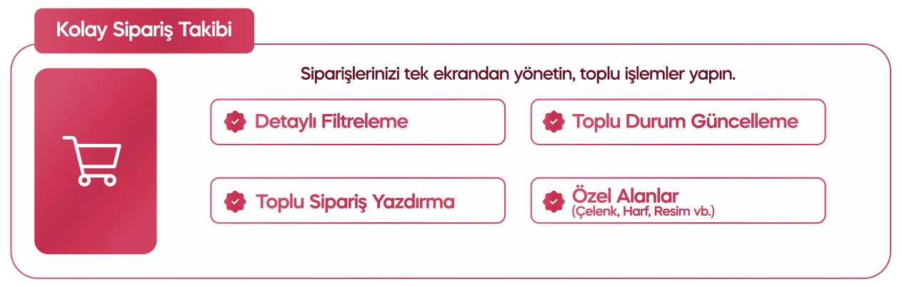 Çiçekçi işletmeleri için özel olarak geliştirilen kapsamlı yazılımımız; sipariş yönetiminden teslimat planlamasına, stok kontrolünden online mağaza entegrasyonuna kadar tüm süreçleri tek bir noktadan kolayca yönetmenizi sağlar. Yoğun özel günlerde hata payını ortadan kaldıran akıllı bildirim sistemi, müşterilere hızlı dönüş yapmanıza destek olurken, detaylı raporlama araçları ile satış performansınızı anlık olarak takip etmenizi mümkün kılar. Hem mağaza içi satışlar hem de internet üzerinden gelen çiçek siparişleri için optimize edilen sistem, kullanımı kolay arayüzü sayesinde teknik bilgi gerektirmez ve iş akışınızı verimli hale getirir. Çiçekçi yazılımımız, büyümek isteyen işletmeler için profesyonel, güvenilir ve esnek bir çözüm sunar; böylece zamanınızı işinizi geliştirmeye ayırabilir, müşterilerinize her zaman en hızlı ve doğru hizmeti sağlayabilirsiniz.